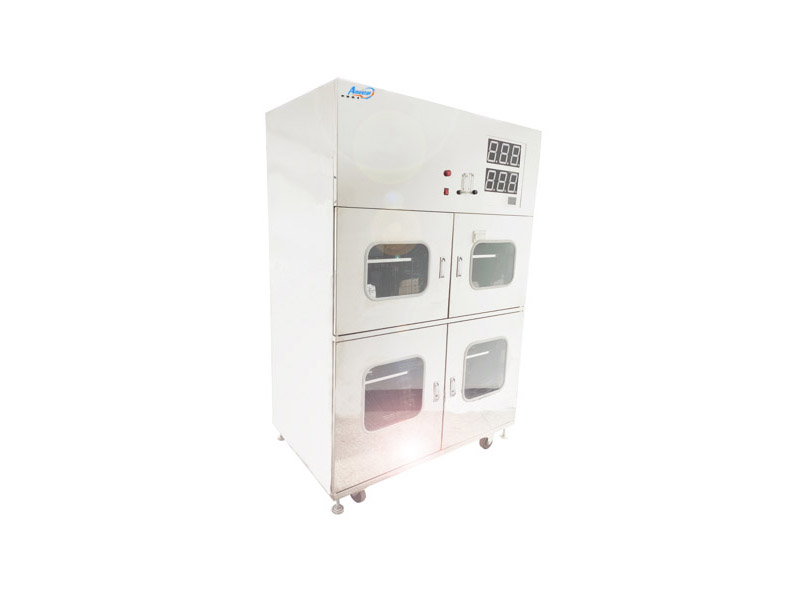 除湿性能可达到5%以下,空柜或每层放置固定盒,在氮气流量不大于70L/M的情况下,湿度从50%降至10%所需时间不大于30min;